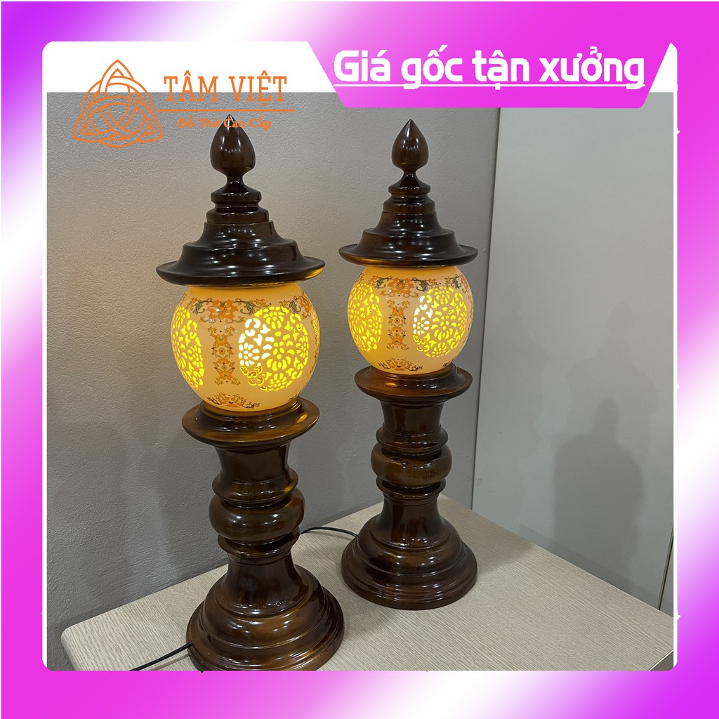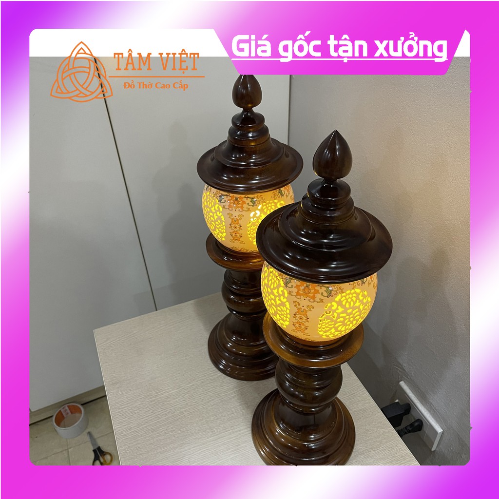 (ĐÈN THỜ GỖ GỤ SỨ CAO CẤP 100%) Hoa Văn 4 Mặt free ship
