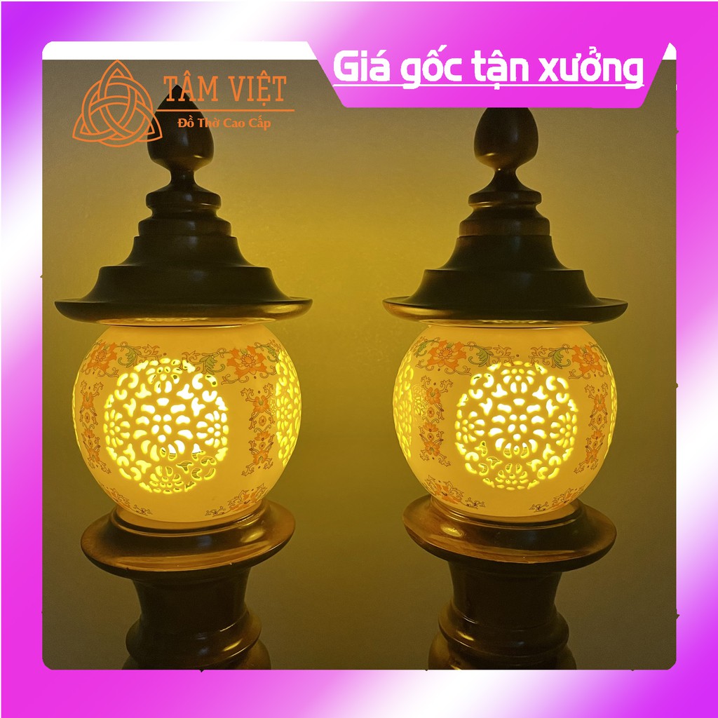 [ hàng loại 1 ] Bộ 2 đèn thờ cúng hoa sen đổi 7 màu, bàn thờ tổ tiên, ông bà, thờ phật, ông địa, thần tài - đèn thờ