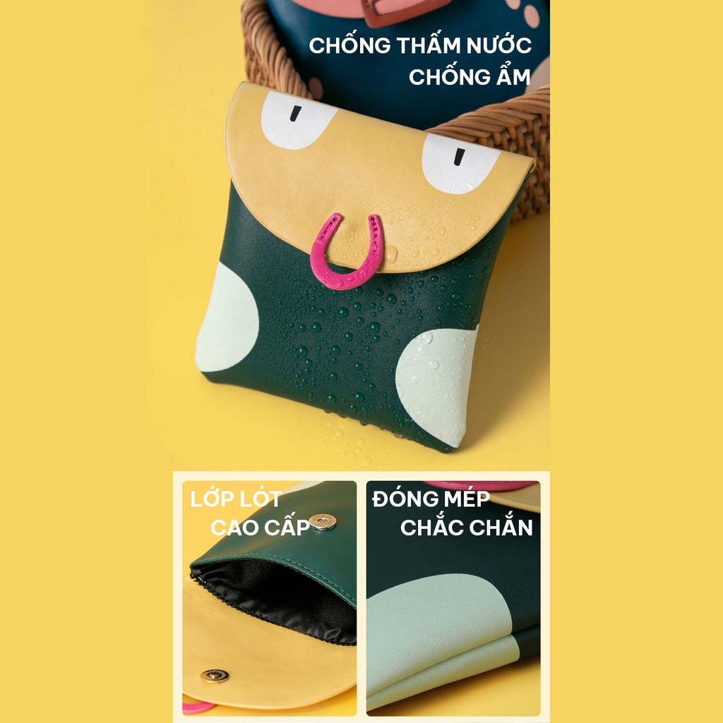 Túi đựng băng vệ sinh tiện lợi, túi đựng mỹ phẩm mini, đựng đồ dù cá nhân làm bằng da PU, có chống nước free ship